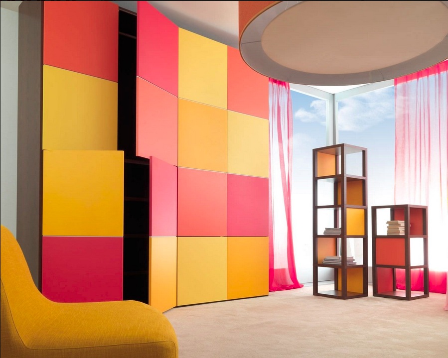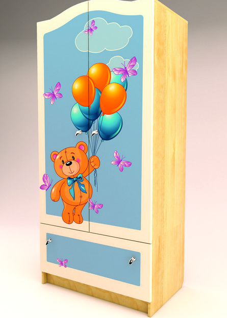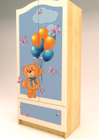 Das Kinderzimmer liebt Farben, so können Sie Ihrer Fantasie freien Lauf lassen, um Ihrem Kind ein farbenfrohes und malerisches Interieur zu bieten. Eine Garderobe mit Flügeltüren, die mit einem hellen Plastik- oder Fotodruck bedeckt sind, wird das Kinderzimmer perfekt dekorieren.