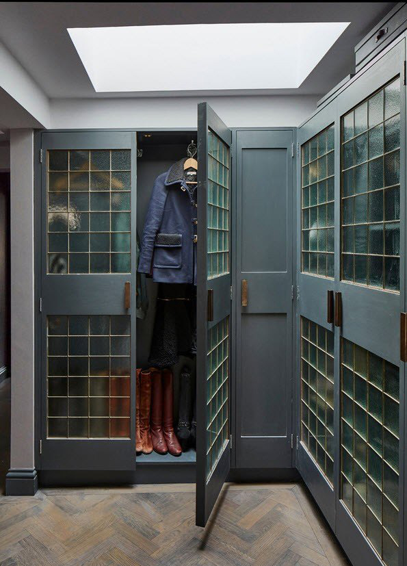 - Da solche Produkte mit Möbeln verwandt sind, sollten die Wände und Türen des Schranks mit dem Rest des Innenraums kombiniert werden.