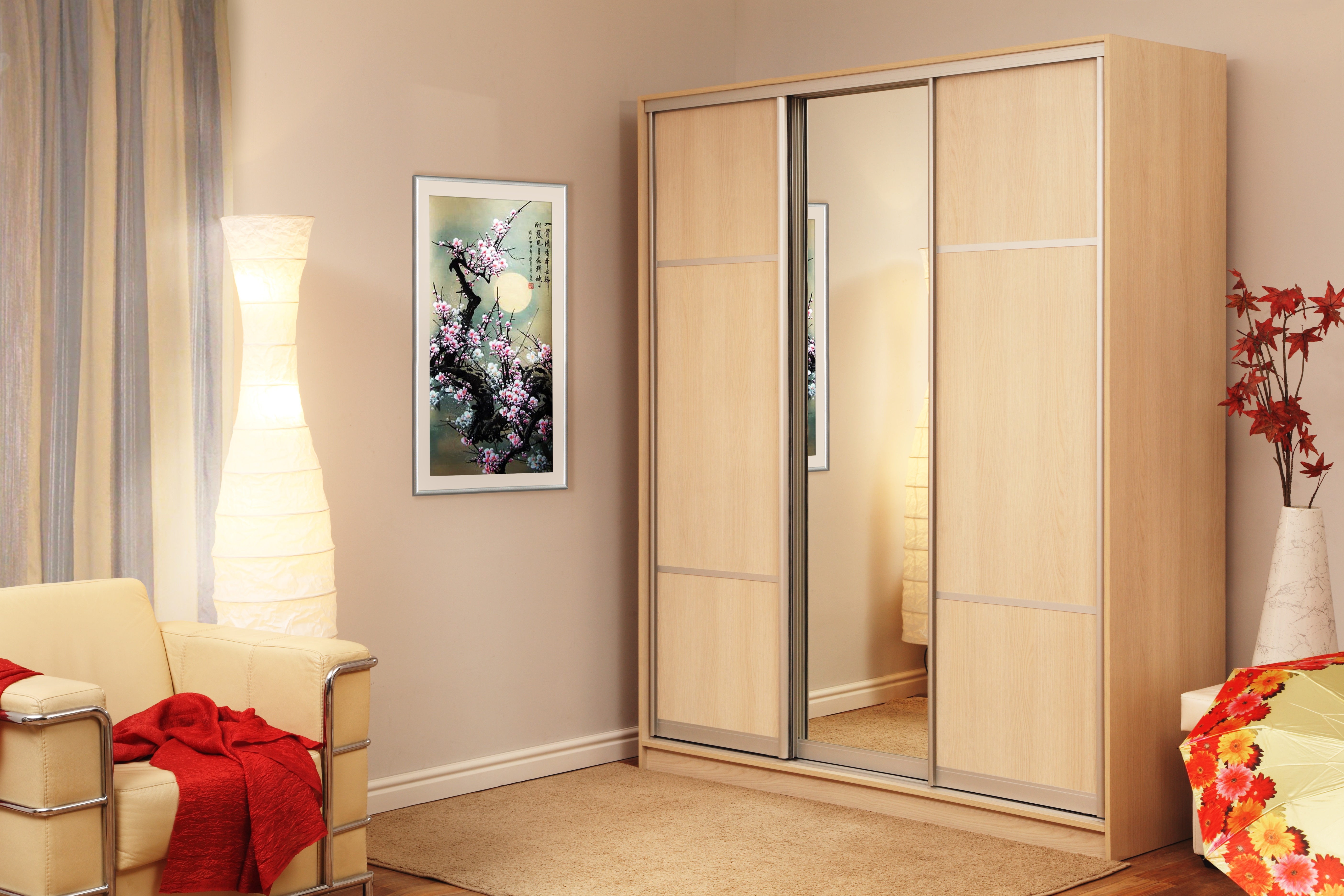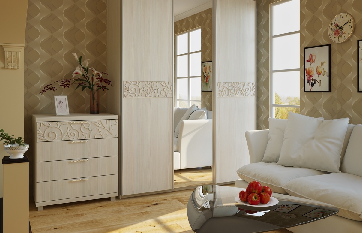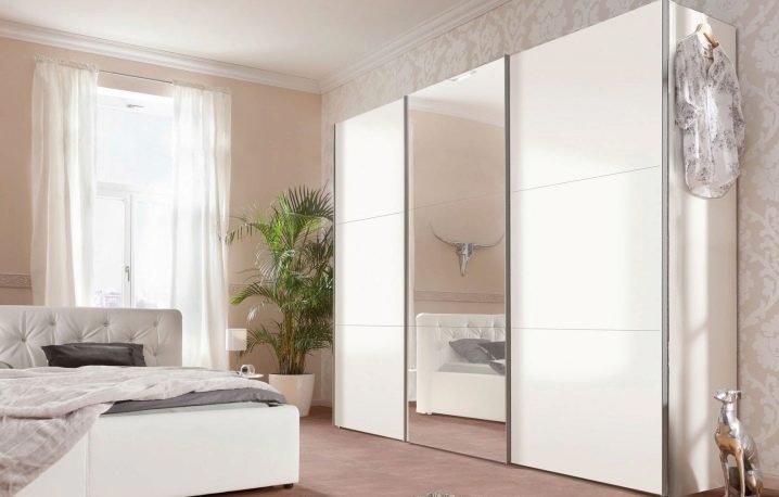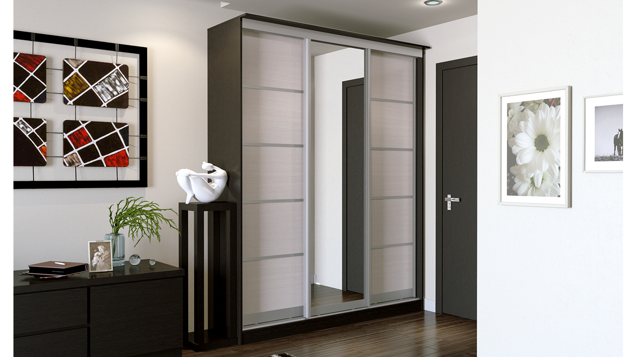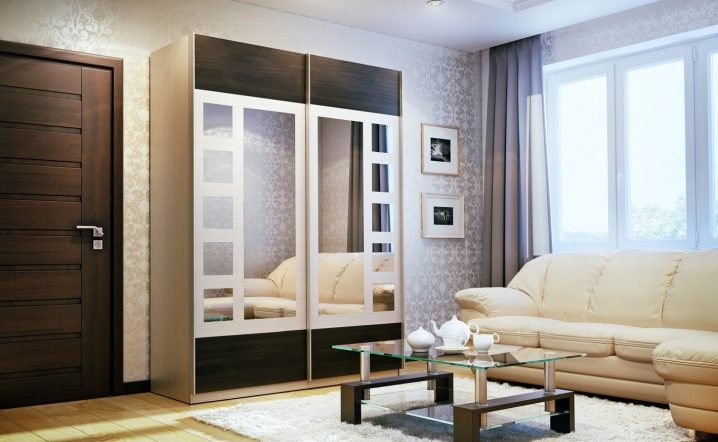 Oftmals bestimmen der zukünftige Standort des Schranks und sein Funktionszweck die erforderliche Größe und den erforderlichen Stil. Der Schiebeschrank mit Spiegeleinsätzen wird eine universelle Lösung für jeden Raum sein. Schiebetüren mit Spiegeln sind in seiner Konstruktion vorgesehen.
