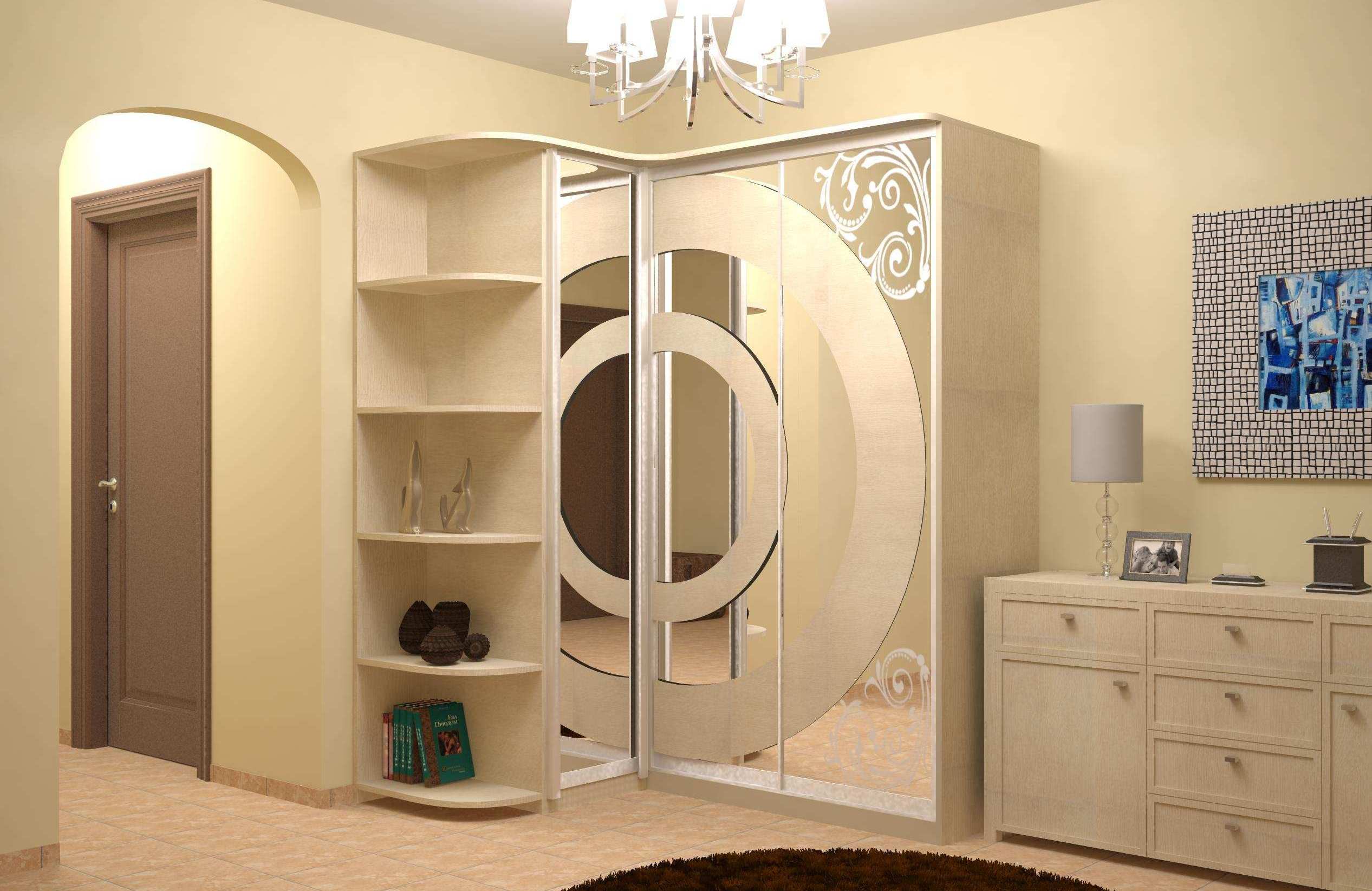 Radiusmodell geeignet für Kenner von Nicht-Standard-Interieur. Die Türen dieses Modells sind abgerundet und betonen die Weichheit und Geschmeidigkeit der gesamten Struktur. Dieser Kleiderschrank hat eine gute Kapazität, perfekt sowohl im Flur als auch im Wohnzimmer.