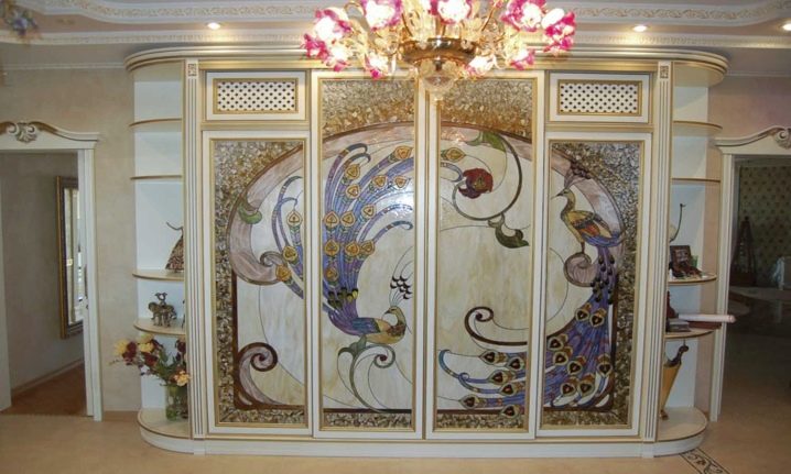 Modelle mit Glasmalerei sind ein Paradebeispiel für aristokratische Möbel. Das außergewöhnliche Mosaik wird jedes Design mit seinem Regenbogen-Design ergänzen. Buntglasfenster bilden ganze Leinwände auf Sideboards, Blumenornamente, abstrakte Figuren und andere einzigartige Elemente, die die Atmosphäre im Raum verspielter und lebendiger machen.