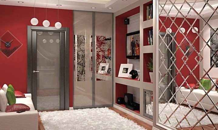 Eckmodelle sparen Platz. Sie können in jeder freien Ecke im Flur, Schlafzimmer und sogar im Badezimmer platziert werden. Mit diesem Möbelstück können Sie den Raum effizient teilen und zusätzlichen Stauraum schaffen. Es kann verschiedene Regale, Querstangen, Schwenkstangen aufnehmen.Das Vorhandensein einer Spiegelfläche an der Tür wird Ihnen helfen, das richtige Outfit zu wählen.