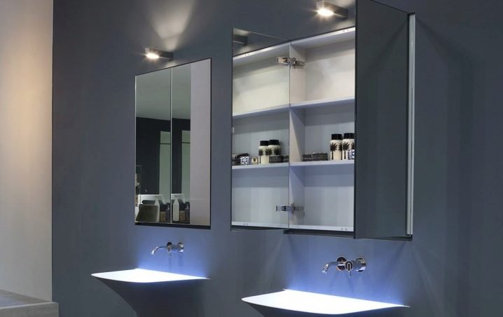 In der Badezimmerschrank mit einem Spiegel wird die wichtigste Eigenschaft sein. Dies kann ein kleiner Wandschrank mit einem Spiegel sein. Es hängt an der Wand über der Spüle und spart so mehr Wohnraum. Es kann eine Vielzahl von Badzubehör (Shampoos, Seifen, Hygieneartikel, Cremes), Haartrockner und Haarglätter, Rasierer speichern.
