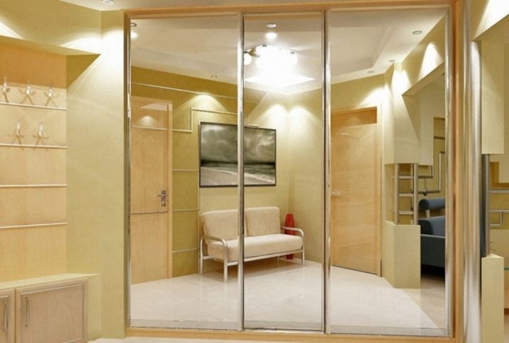 Eine gute Lösung für kleine Räume ist ein Einbauschrank mit Spiegel. Meistens wird es zur Ordnung gemacht, weil es notwendig ist, die spezifischen Parameter des Zimmers, das Vorhandensein von Nischen zu berücksichtigen. Wenn sich ein solches Modell im Korridor befindet, wird es zu einem hervorragenden Container für Oberbekleidung und eingebaute Regale helfen, Ihre Schuhe und Hüte zu behalten.