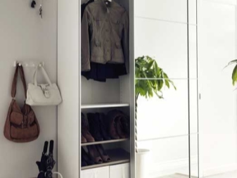 Das äußere Design des ausgewählten Modells muss mit dem Innenraum harmonieren. Es ist notwendig, die Farbskala der Wände und des Bodens, die Gestaltung anderer Möbel und die Abmessungen des Raumes zu berücksichtigen. Denken Sie daran, dass helle Farben und Spiegelelemente den Raum erweitern. Ein Schrank mit einem Ganzkörperspiegel wird auch eine praktische Funktion haben, die besonders wichtig für den Flur ist.