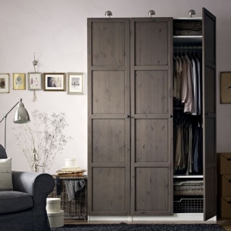 Alle Modelle sind im charakteristischen minimalistischen Stil für Ikea gefertigt. Die Schlichtheit der Formen und die Klarheit der Linien lassen die Schränke harmonisch in das streng klassische und originelle moderne Interieur passen. Und durch die Wahl von Farblösungen und Texturen kann die Garderobe ganz anders aussehen.