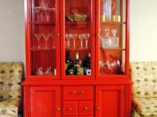 - Buffet. Dies ist ein klassisches Modell der Sowjetzeit. Das Design ist in drei Zonen unterteilt. Die obere hat Glasregale, die Rückwand der Möbel hat eine Spiegelfläche, und die Fassade besteht aus Glas von etwa 5 mm Dicke (oder hat ein halbgeschlossenes Aussehen). Die untere Zone ist normalerweise mit Holztüren geschlossen und in 2 Regale aus Holz oder Kunststoff unterteilt. Die dritte Zone kann je nach Design des Möbels angeordnet werden, ist mit einem Schlüssel verschlossen und von innen mit Spiegelflächen ausgestattet. In der "Bar" ist es üblich, Schokolade und starke Getränke zu lagern.