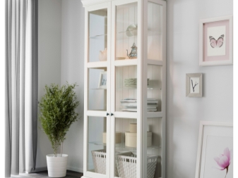 Daher gelten die Regeln für die Auswahl und Installation von Schränken mit Glas, Nr.Es ist notwendig, sich auf das Modell von Möbeln, Materialien und Relevanz für ein bestimmtes Interieur zu konzentrieren. Die Vorteile solcher Schränke sind Schönheit, Bequemlichkeit und Erschwinglichkeit.