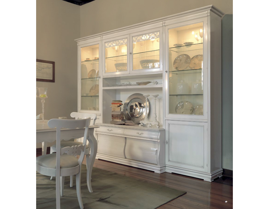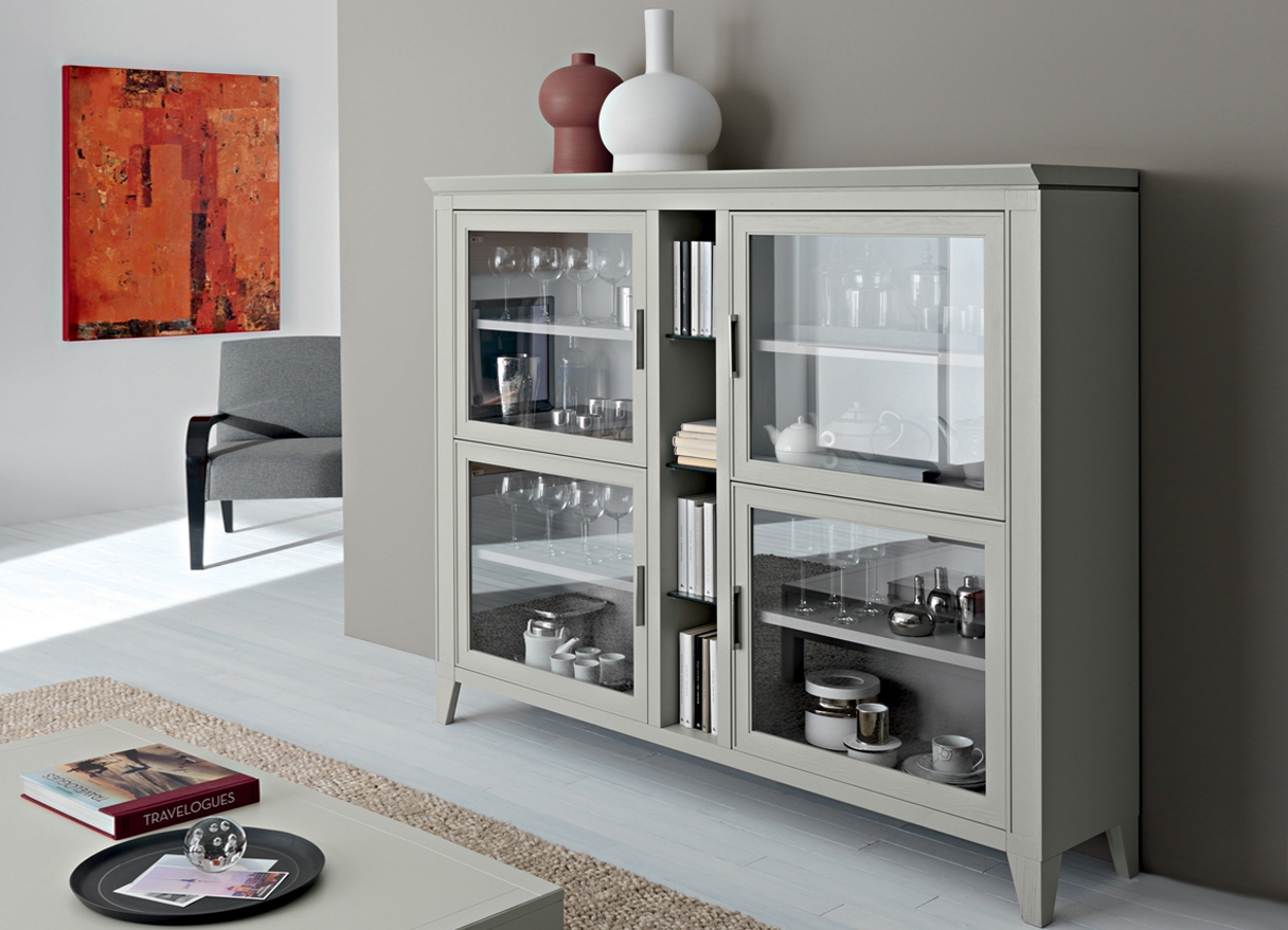 - Sideboard Ein solcher Schrank hat eher große Abmessungen als ein Buffet, und es gibt auch keine Zone für die "Bar". Das Modell ist in der Regel in 2 Zonen unterteilt: geschlossen dicht verdreht und verglast. Einige Schließfächer haben zusätzlich einen anderen Bereich zum Aufbewahren von Kleidung oder Mänteln, es kann Schubladen geben. Die Glasfassade wird in Form von transparenten Türen oder einem System von Türfächern dargestellt.