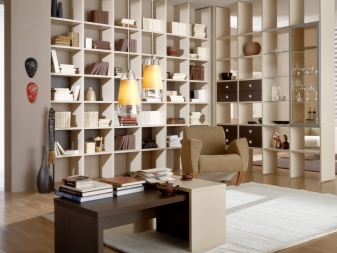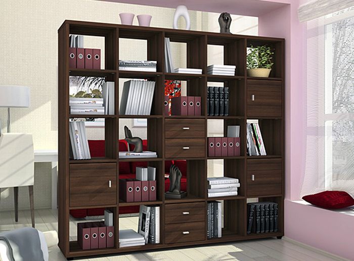 - Zoneneinteilung Mit Hilfe dieses Möbelstücks können Sie einen Raum leicht in mehrere Zonen unterteilen. Das Regal dient als Trennwand und somit sind die Küche und das Esszimmer, das Schlafzimmer und das Arbeitszimmer, das Kinderzimmer und der Spielbereich getrennt. Wandkonstruktionen ersetzen eine vollwertige Hauswand, die keine zusätzlichen Strukturen erfordert.
