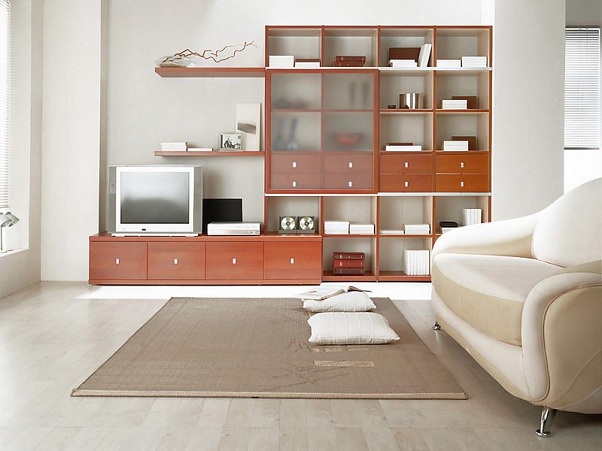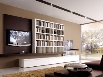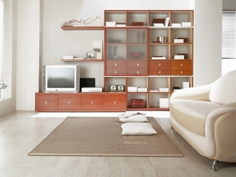 Professionelle Designer bieten mehrere unkomplizierte Optionen für den richtigen Einsatz von Schrankregalen. Für ein Zimmer in hellen Farben ist es empfehlenswert, Designs in dunklen Farben zu installieren, um es gesättigter und stilvoller zu machen. In kleinen Räumen lohnt es sich, kleine Kleiderschränke zu benutzen, die den Raum erweitern und die Atmosphäre angenehm zum Aushängen machen.Sie können sicher als Stand für den Fernseher oder als Aufbewahrungsort für verschiedene Dinge verwendet werden.