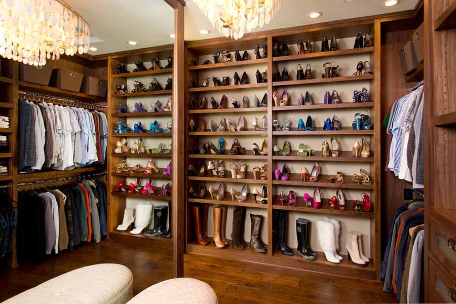 - Eingebaute Modelle Ideal für kleine Räume, da sie den Raum visuell erweitern können. Grundsätzlich sind sie in die Hauptmöbel oder Wandnischen eingebettet. Diese Option gilt als ideal für den Flur und kann auch unter den Treppen in großen Häusern gefunden werden.In diesem Fall sind inakzeptable Abmessungen während der Herstellung, da alle Regale eindeutig den spezifizierten Rahmen entsprechen müssen. Aber das bedeutet nicht, dass Sie nur bestimmten Standards folgen müssen. Sie können auch Fantasie zeigen, indem Sie asymmetrische Kleiderschränke mit Regalen in verschiedenen Größen und Höhen schaffen. Es ist interessant, das Innere der so genannten Multilayer-Modelle zu betrachten, die aus Regalen unterschiedlicher Tiefe bestehen, die in mehreren Schichten angeordnet sind.