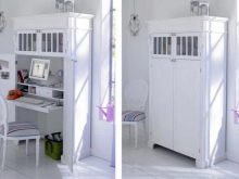 Solche Modelle werden bereits von vielen Benutzern geliebt. Sie sind komfortabel, praktisch und interessant. Mit diesem Schrank können Sie die Halle, Küche, Ihr Zimmer perfekt dekorieren. Solche Modelle helfen, Platz zu sparen. Zum Beispiel kann es eine Garderobe sein, die den Arbeitsplatz mit einem Tisch perfekt abdeckt. Oder Sie können eine Sekretärin mit einem Klapptisch kaufen. Sie können solche Optionen in der Ecke und in der direkten Ausführung finden.