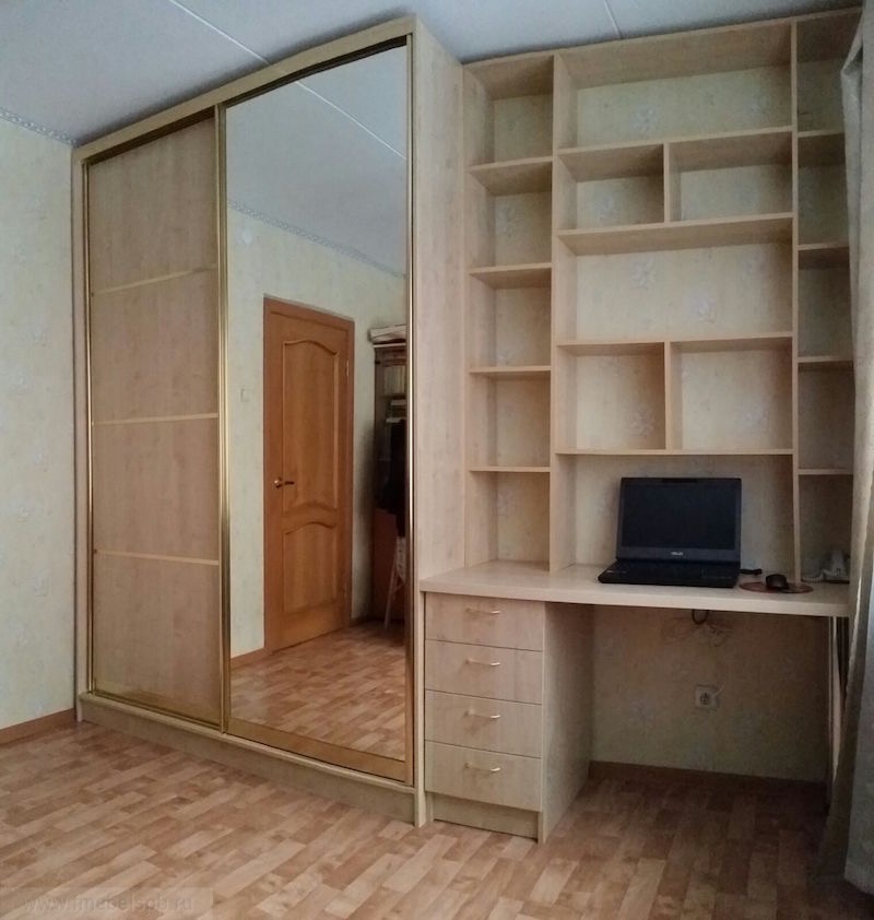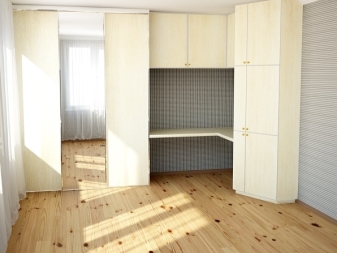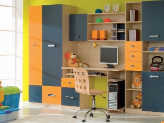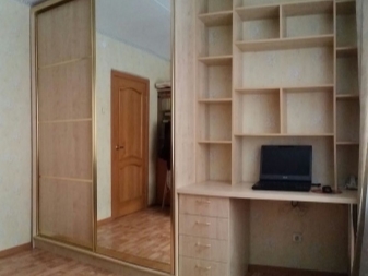 Solche Möbel werden in fertiger Form gekauft. Hier finden Sie alle notwendigen Abteilungen, um die notwendigen Dinge zusammenzustellen. Es wird auch einen Arbeitsplatz geben. Solche Standardoptionen belegen eine beeindruckende Grundfläche. Daher ist es besser, ein solches Modell zu erwerben, wenn Sie nicht im Raum sind.