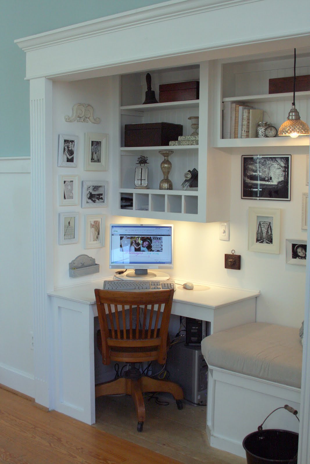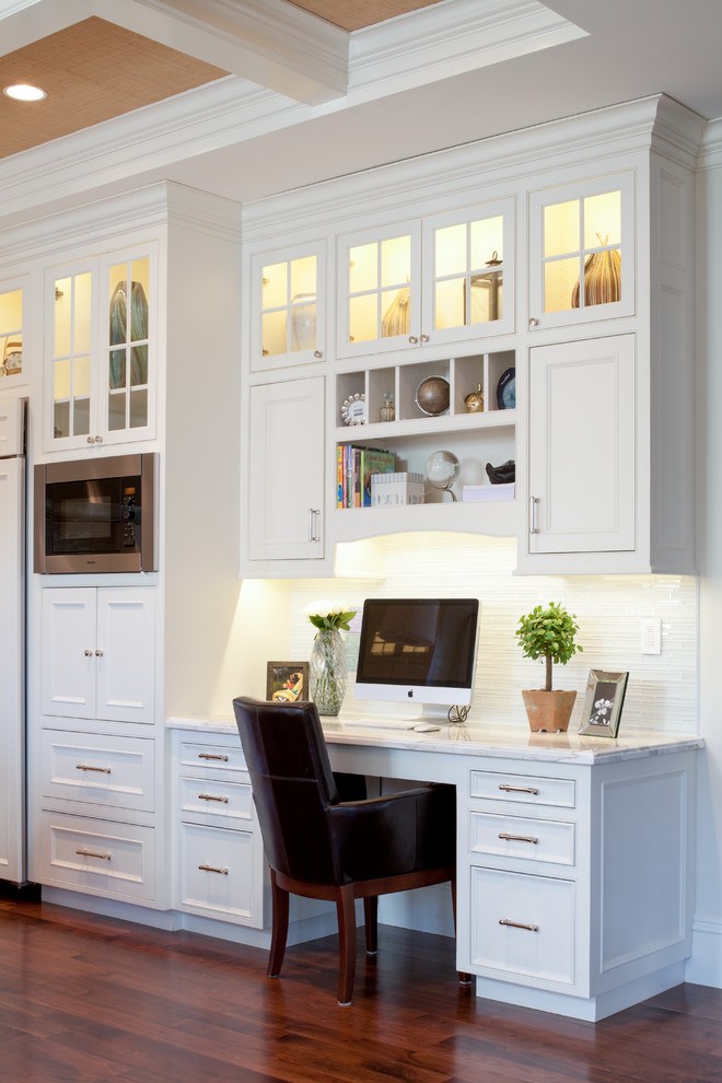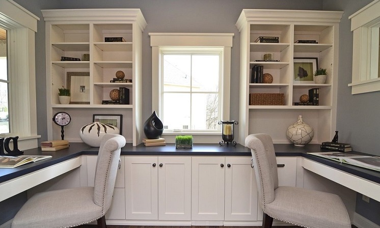 Diese Option wird eine ausgezeichnete Option sein, um den Raum zu verbessern. Dieses Design wird stilvoll und praktisch aussehen. Es wird genug Platz sein, um alle notwendigen Zubehörteile zu platzieren, sowie einen Desktop, auf dem Sie arbeiten können.