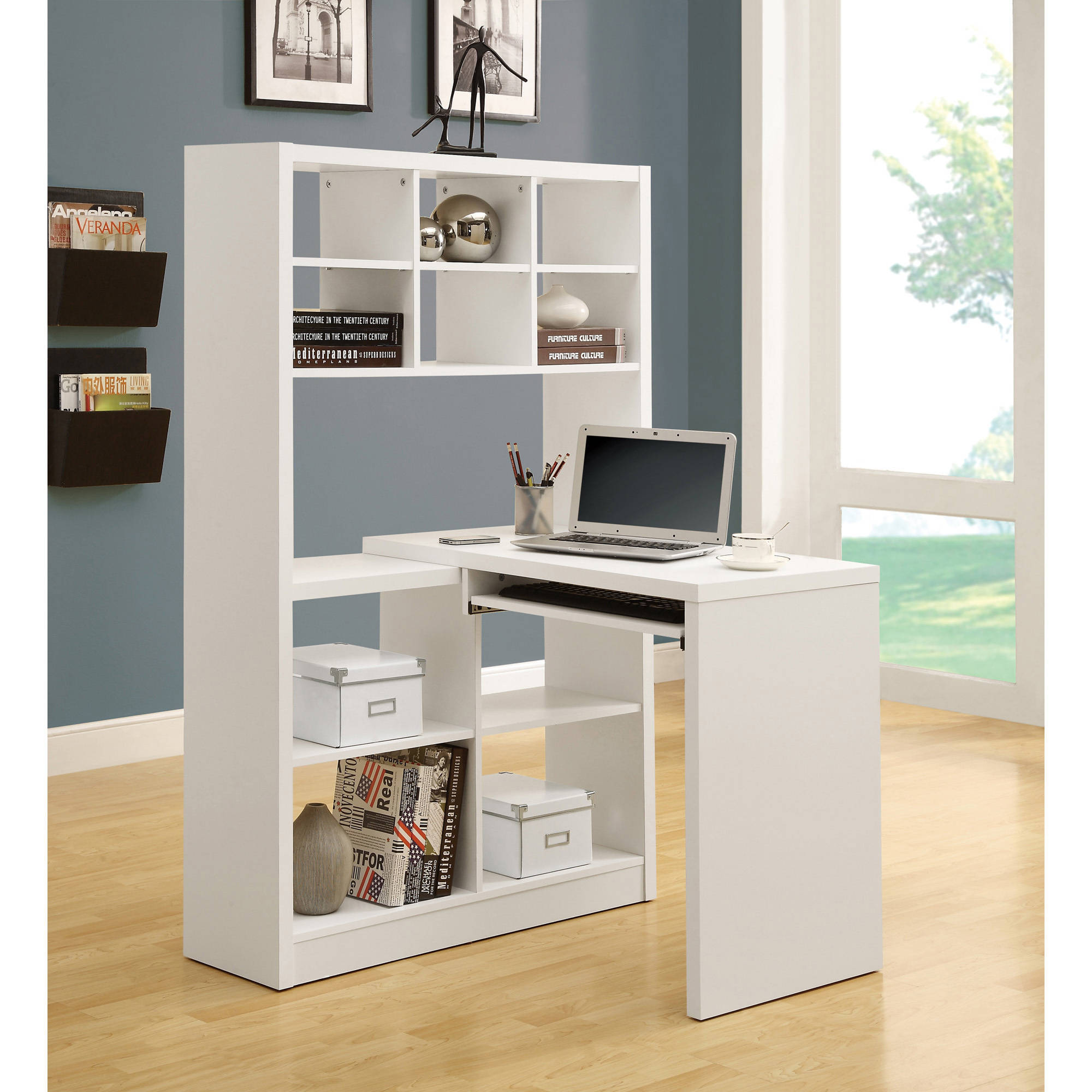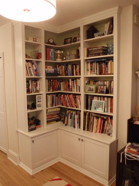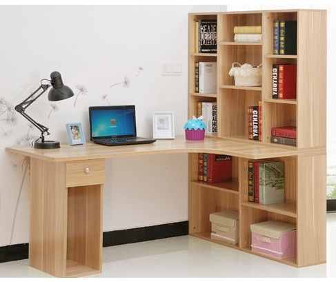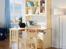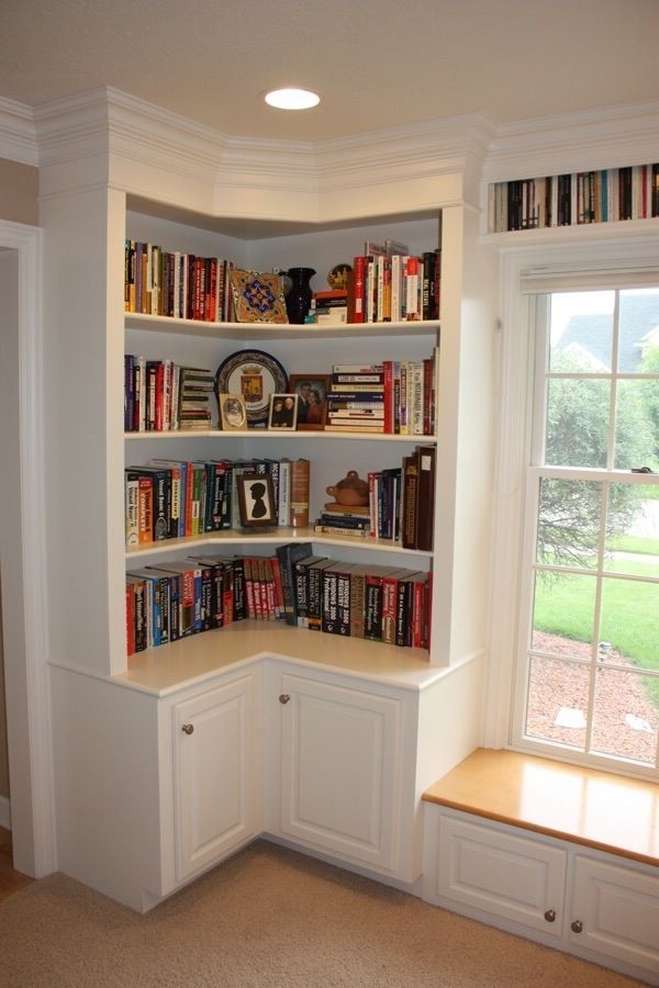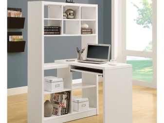 - Eckbücher schlagen oft vor Verfügbarkeit des ArbeitsplatzesZum Beispiel ein Computertisch. In diesem Fall können die Regale es einrahmen. Diese Option ist sehr praktisch beim Arbeiten und Lernen, denn um das gewünschte Buch zu erreichen, müssen Sie nicht einmal von Ihrem Platz aufstehen.