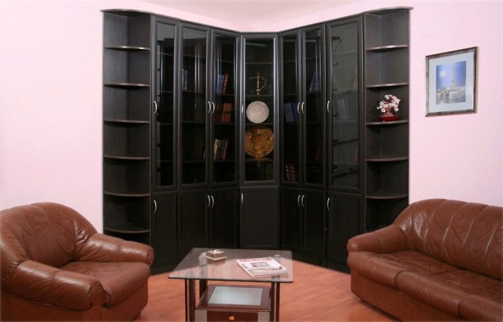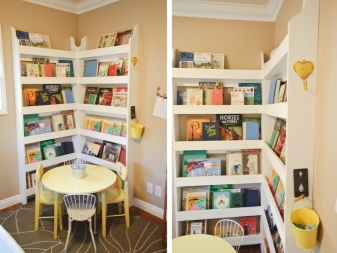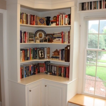 Eckbücher enthalten viele Bücher, Zeitschriften und andere Drucksachen, die Leseliebhaber erfreuen werden. Außerdem dient ein solcher Schrank aufgrund seines ungewöhnlichen Designs oft als eines der wichtigsten dekorativen Elemente des Wohnzimmers, Schlafzimmers oder Büros. Dieses Element des Innenraums kann auch für dekorative Zwecke verwendet werden, wenn Sie stilvolle Accessoires zu seinen Regalen hinzufügen.