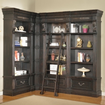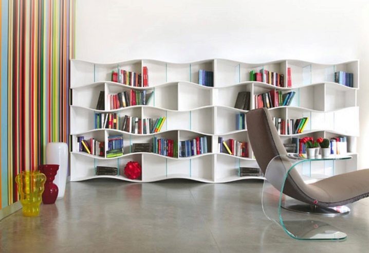 Bücherregal ist keine Notwendigkeit. Aus diesem Grund wollen zukünftige Besitzer ein raffiniertes Funktionsmodell wählen, das zum zentralen Element des Interieurs wird. Dieses Möbelstück ist ein Indikator für den Status der Besitzer: sowohl der hohe materielle Reichtum als auch der intellektuelle Reichtum.