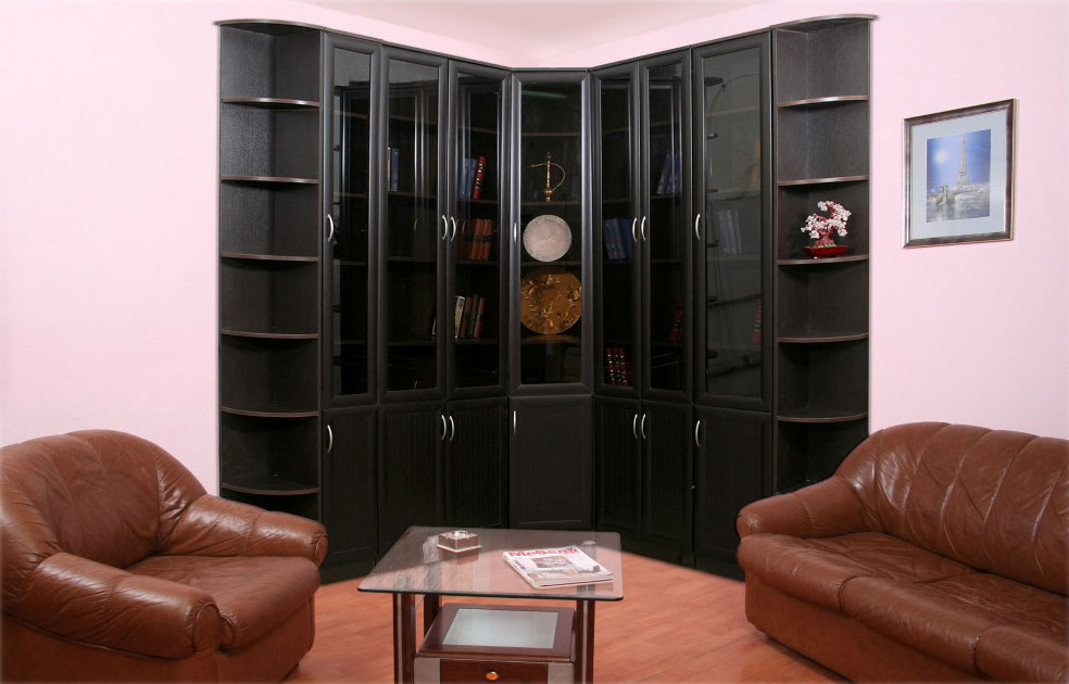 Zur Zeit hat der Möbelmarkt eine große Auswahl an Eckregalen verschiedener Designs. Ihre Monotonie ist nur imaginär, denn im Innenraum gibt es eine Vielzahl unterschiedlicher Richtungen, und jeder kann das passende Modell wählen.