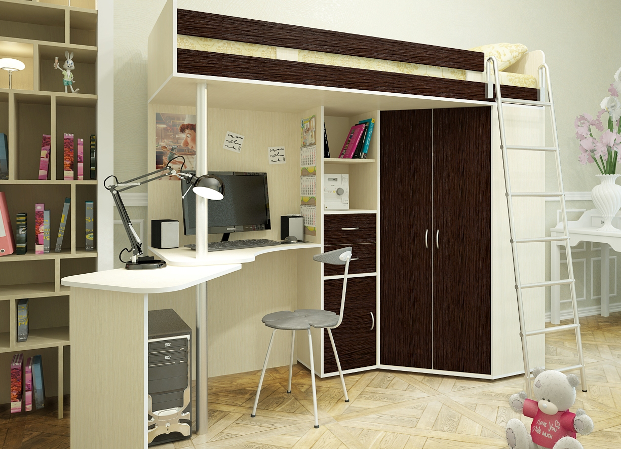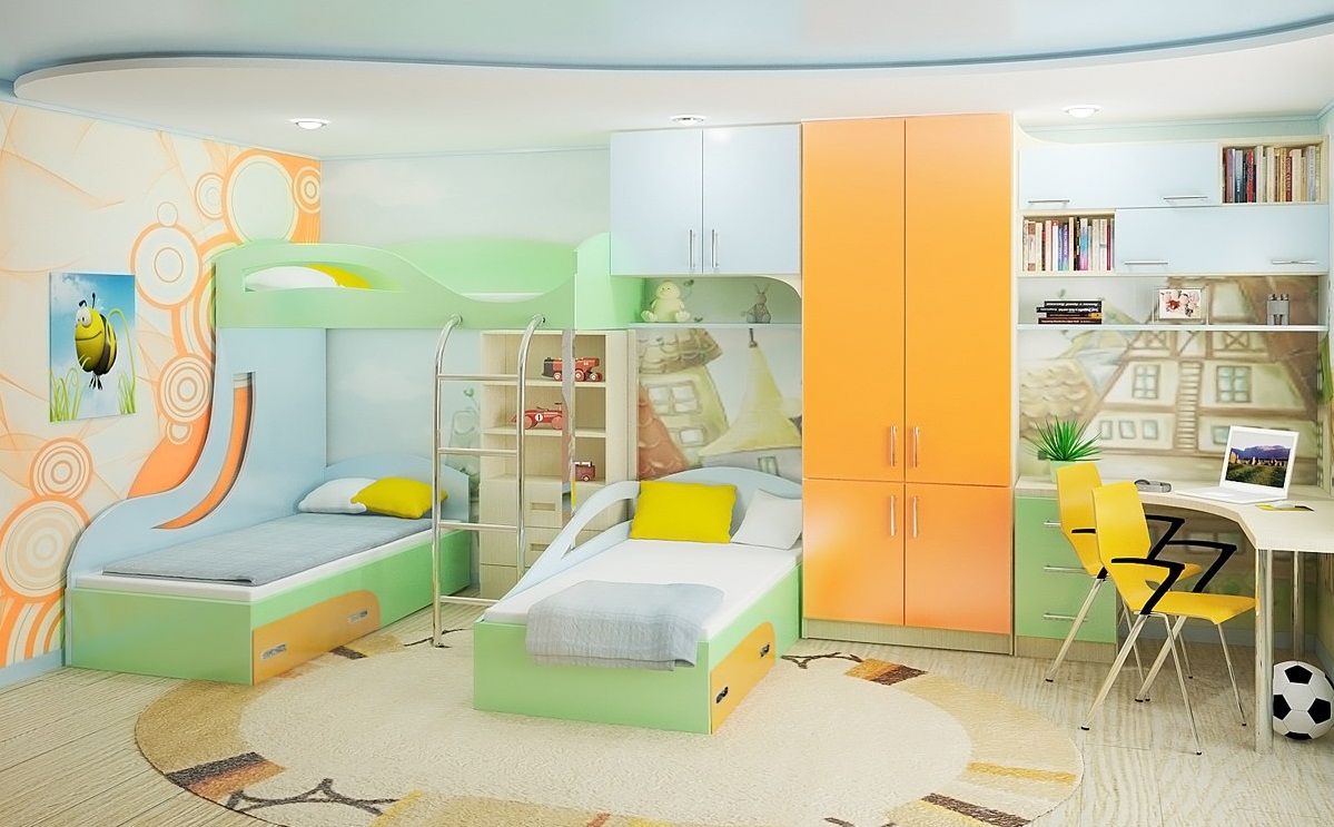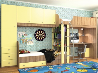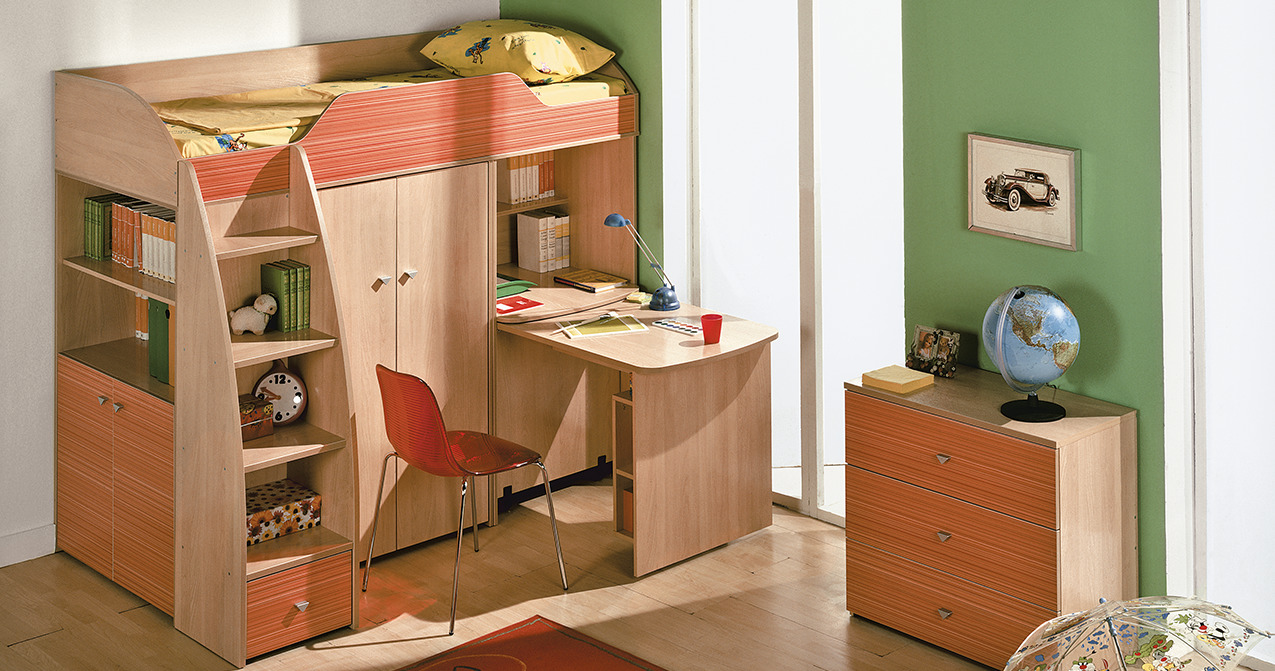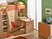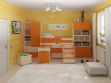 - Die Funktionalität von Möbeln für Kinder ist unbestreitbar. Kinder sind nicht so wichtig, teure Accessoires, wie das Vorhandensein einer ausreichenden Anzahl von Lagerplätzen für Spielzeug, Dinge, Lehrmaterialien.Eine ausgezeichnete Lösung wird in Form eines Möbelkomplexes aus einem Kleiderschrank, Betten und Schreibtischen präsentiert.