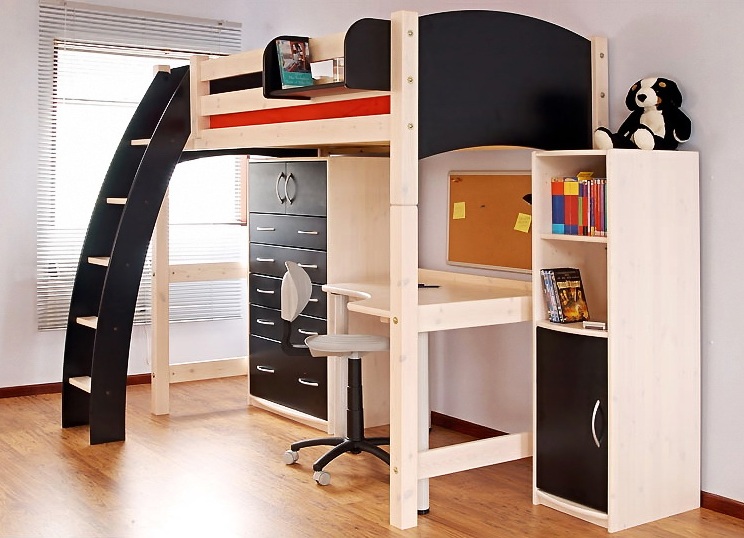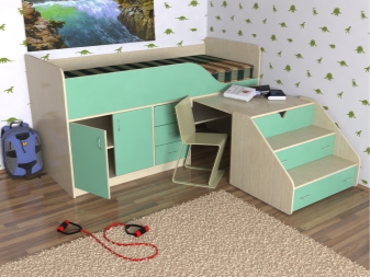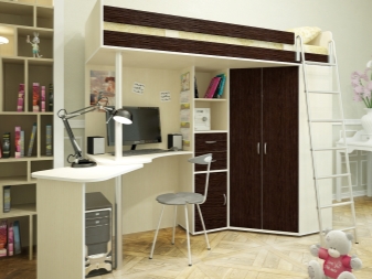 Andere Modifikationen können mit Regalen ausgestattet werden, es bietet zusätzlichen Platz für die Aufbewahrung von Büchern oder anderen Gegenständen, die im Auge behalten werden sollten. In dem Fall, wenn nicht genug Platz ist, können Sie Möbel-Transformator kaufen. Während des Tages hat diese Erfindung die Form eines Tisches, und am Abend verwandelt sie sich in ein Bett. Sie können also nicht auf dem Spielfeld des Kindes speichern. In diesem Fall kann das Gehäuse je nach Bedarf auf beiden Seiten montiert werden.