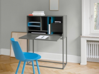 Es gibt noch Modelle, deren Schreibtisch als Sekretärin gestaltet ist. Dies ist ein kleiner Schrank mit einer Tischplatte und einer Vielzahl von verschiedenen Einbauschränken und Regalen, die es dem Organisator ähnlich macht. Alle Trainingsmaterialien und Schreibwaren werden ihren Platz einnehmen und zur Hand sein. Für Fans von Schreibtischen mit Klappdeckel ist es einfach, mit dieser "Inklusion" das Modell der Schülerecke auszuwählen, das ihnen gefällt.