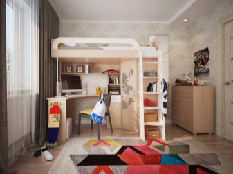 - Entsprechend dem Boden des Kindes Farben und Themen der Möbel. Ecke für Mädchen unterscheiden sich anders als die männliche Version. Dies wird in der Auswahl der Farben und im Detail gesehen.