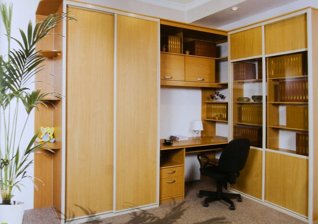 - Der zukünftige Jurist kann Aufbewahrungsorte für Bücher unter der Bibliothek speichern, und die Ecke selbst kann zu einem festen Schrank gemacht werden.