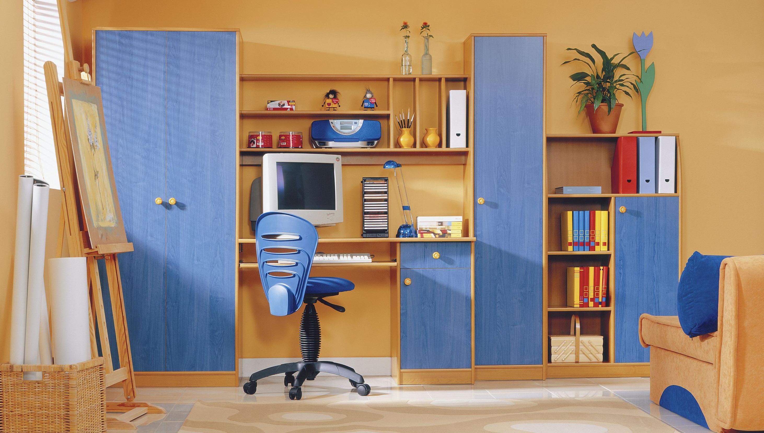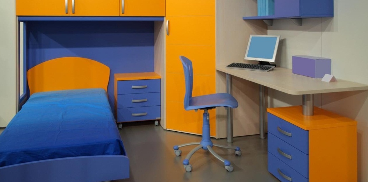 Wissenschaftler haben die Wirkung von Farbe auf den emotionalen Zustand von Kindern bewiesen, und es ist nicht wert, die Bedeutung eines solchen Faktors wie die Farbe einer Studentenecke zu vernachlässigen. Die Bedeutung eines bestimmten Farbtons sagt nicht, dass alle Möbelstücke genau das sein sollten.