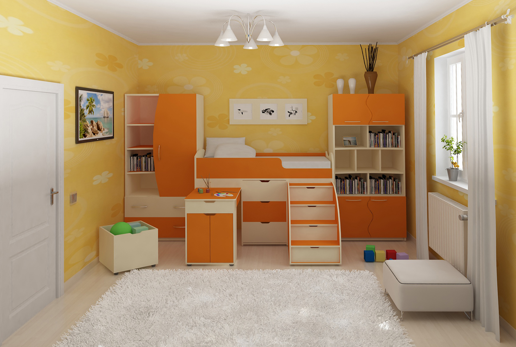 - Sunny Gelb und Orange sind eine weitere gewinnende Farblösung für Kindermöbel. Sie laden mit positiver Energie auf und induzieren Aktivität.