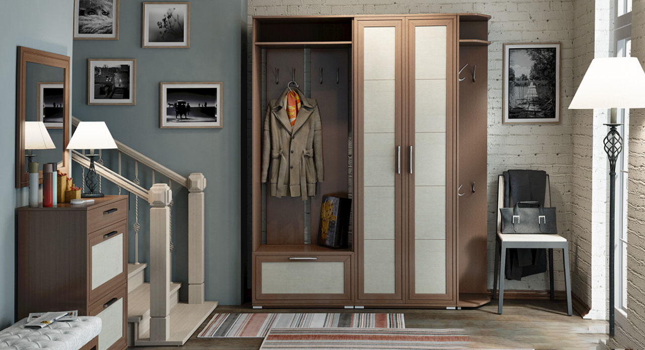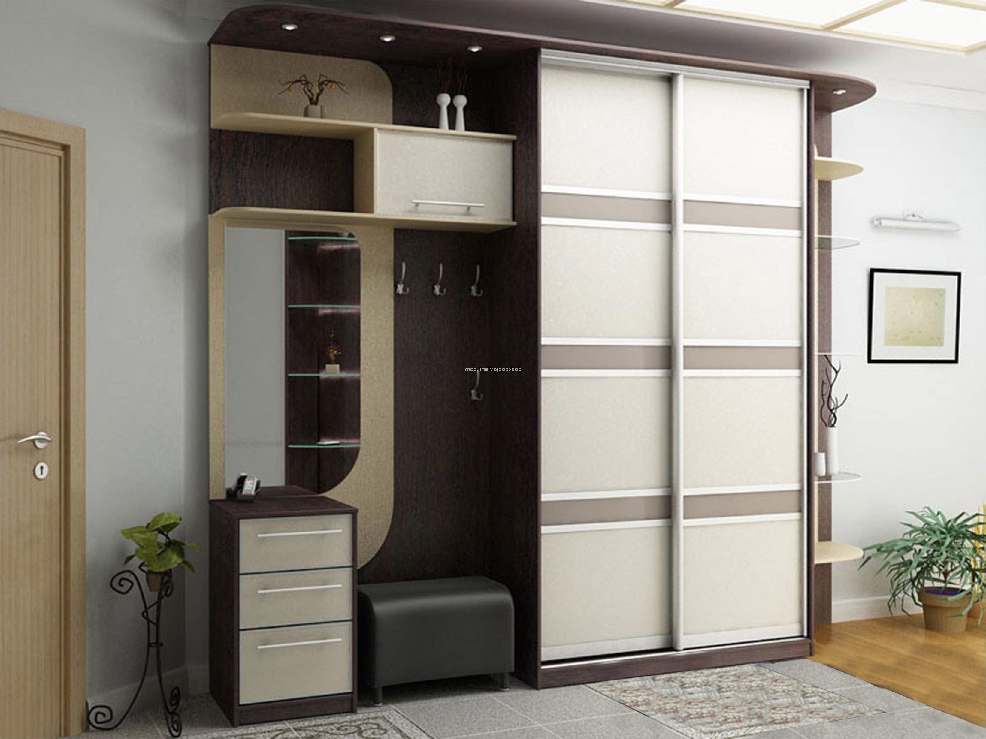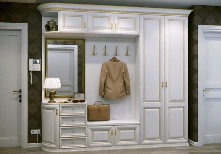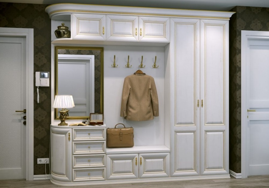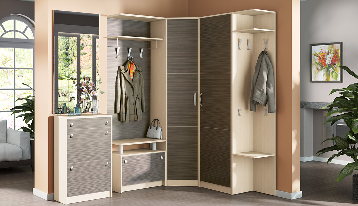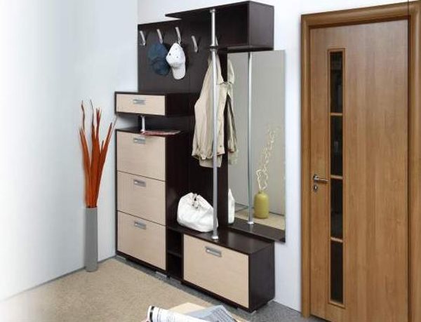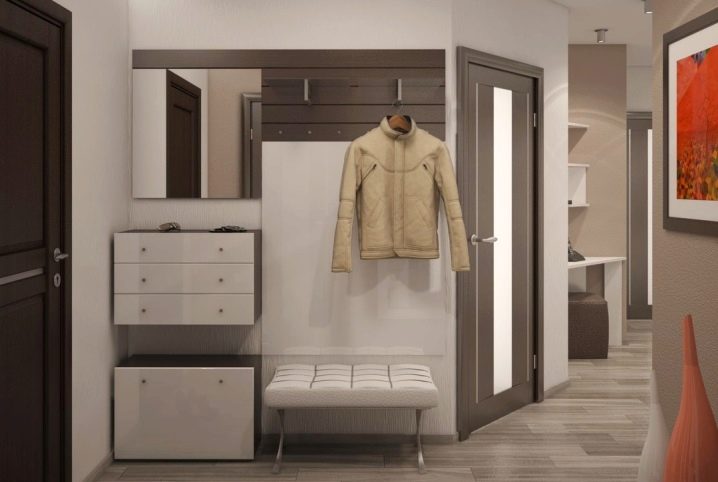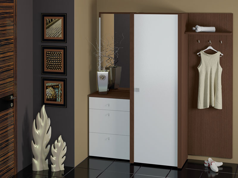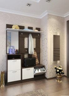 Modelle im Korridor sind strukturell eingebaut und standardisiert. Das eingebaute Modell ermöglicht die Platzierung in einer engen Nische. In der Regel werden diese Modelle auf Bestellung gefertigt und sind ideal für einen kleinen Raum.