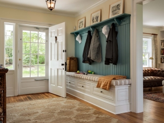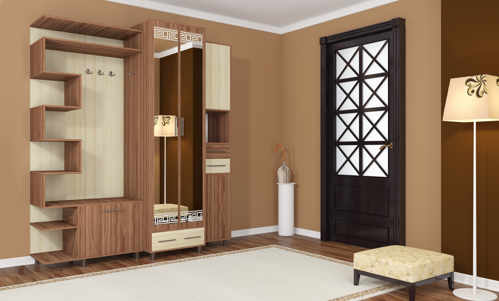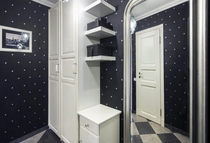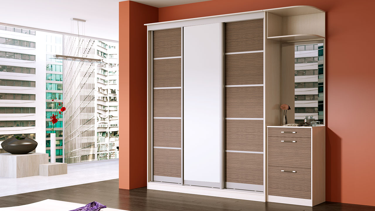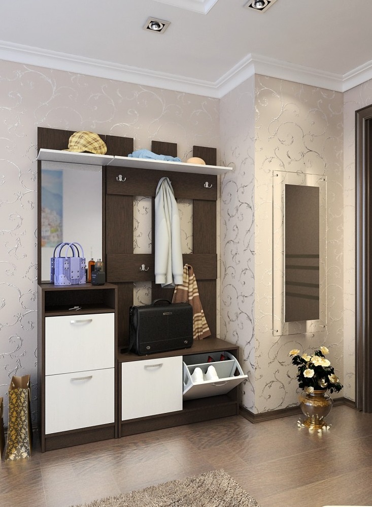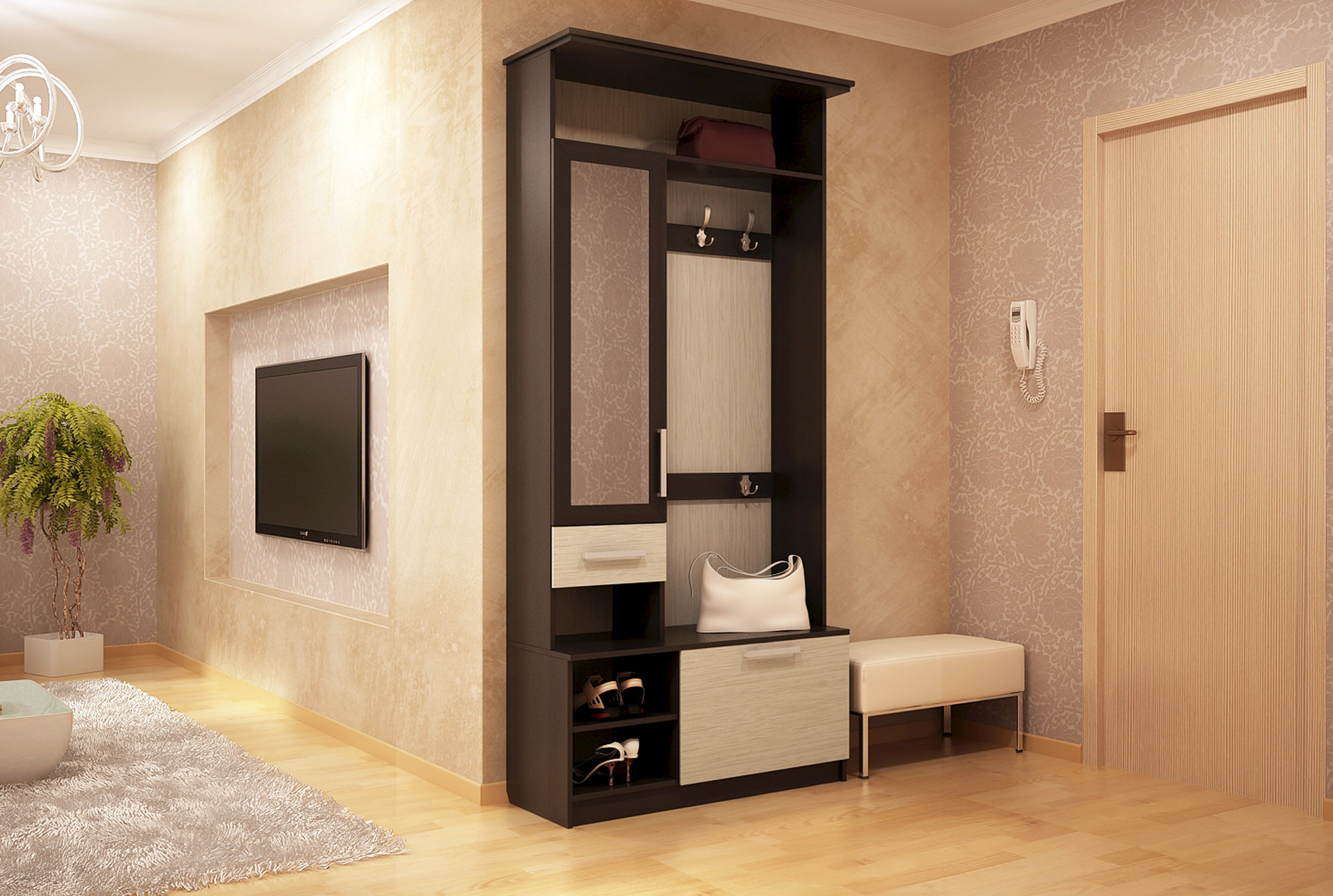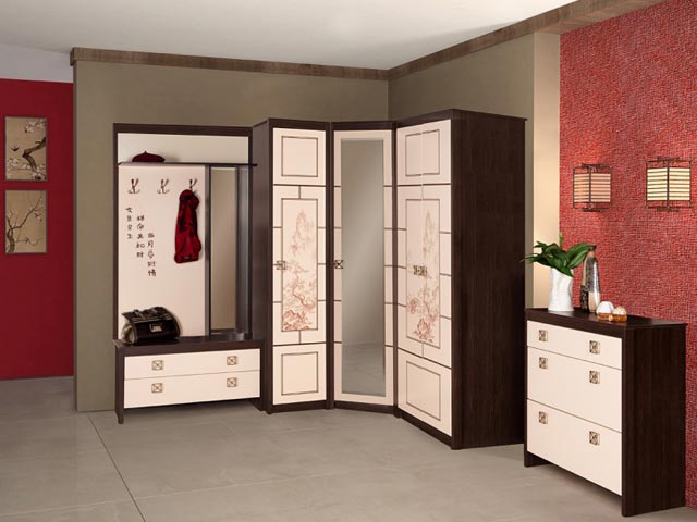 Modelle im Korridor sind strukturell eingebaut und standardisiert. Das eingebaute Modell ermöglicht die Platzierung in einer engen Nische. In der Regel werden diese Modelle auf Bestellung gefertigt und sind ideal für einen kleinen Raum.