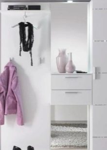 - Minimalismus Schmale Garderobenmodelle in diesem Stil sind die einfachste Lösung für einen kleinen Raum. Im Grunde handelt es sich um helle Produkte mit einem einfachen Design, um die Lagerung von Straßenkleidung zu vereinfachen.
