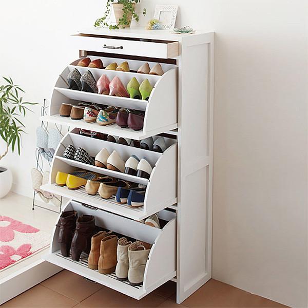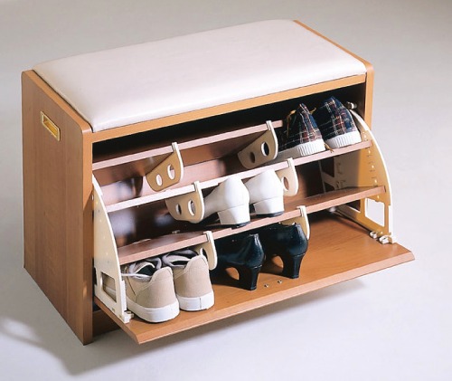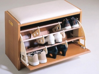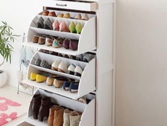 Ein schöner klappbarer Schuhschrank spart wertvolle Quadratmeter. Es wird oft als dekoratives Element verwendet, indem eine Vase oder eine Blume darauf gelegt wird. Und schließlich ist der Schuhkarton im Haus nie überflüssig.