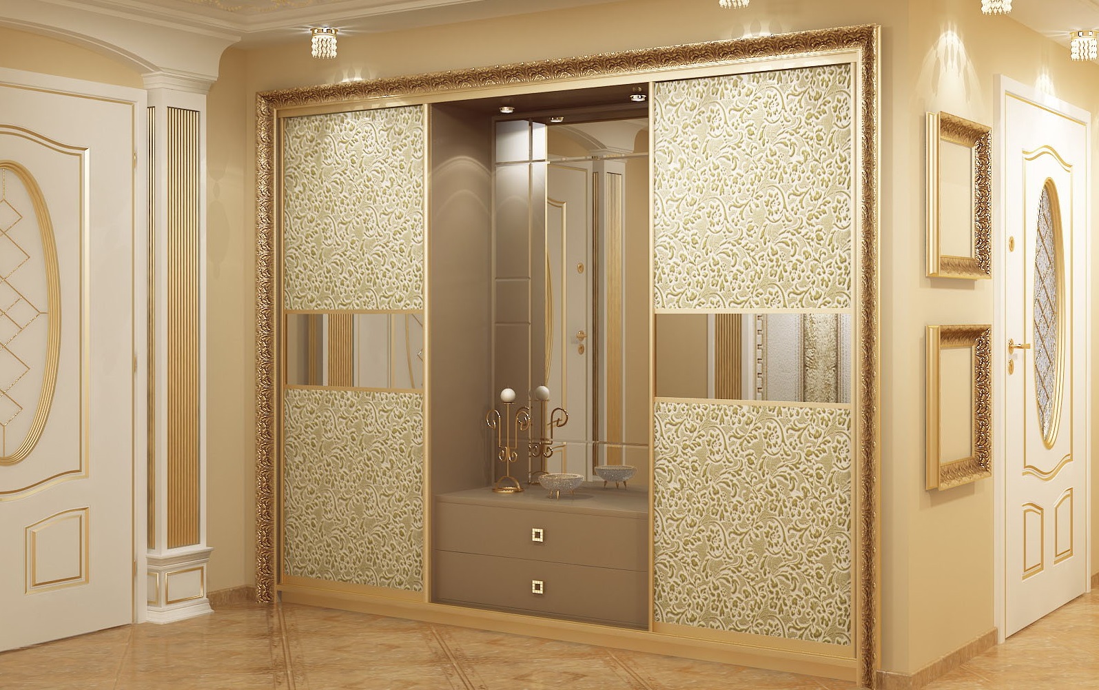 - Klassisch Das Design der Räumlichkeiten in diesem Stil beinhaltet die Verwendung von natürlichen Materialien für die Herstellung von Möbeln. Chance von hellem Holz Kleiderschrank mit einem prägnanten Dekor.