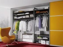 Ein weiterer wichtiger Punkt ist, dass es besser ist, moderne Kleiderschränke zu kaufen. Hinter den Schiebetüren eines solchen Schrankes können Regale, Schubladen und Kleiderbügel versteckt werden. Der Schiebeschrank ist praktischer und geräumiger. Außerdem schwingen sie nicht auf, sondern bewegen sich einfach zur Seite, so dass Sie neben dem Schrank noch etwas anderes einbauen können, zum Beispiel einen Stuhl oder ein Sofa.
