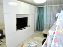 Dies ist eine klassische Version des Gehäuses. Es ist nicht in einer Nische eingebettet, sondern einfach unter die Wand gestellt. Solche Möbel können bei Bedarf zur Seite geschoben werden. Eine solche Konstruktion nimmt in der Regel die gesamte Wand ein und ist nicht durch irgendwelche Regale unterteilt. Es ist einfach genug, es auch ohne die Hilfe von Profis zu montieren.