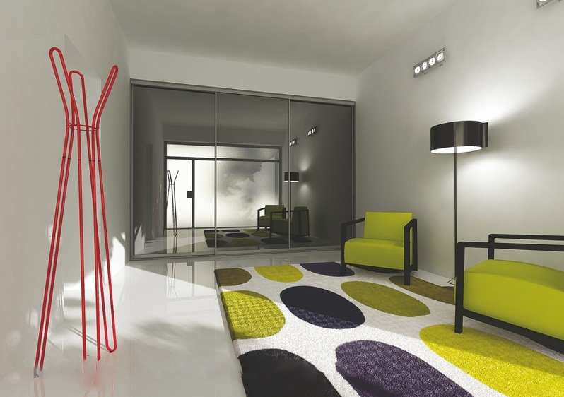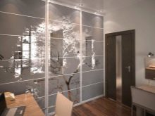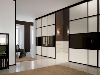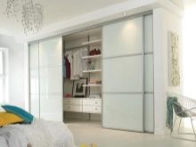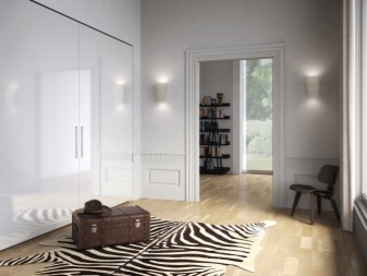 Besondere Aufmerksamkeit verdient die Garderobe, die als eines der modernsten Designs gilt. Schiebetüren sind viel praktischer als Pendeltüren.Hinter ihnen ist eine große Anzahl von Regalen und Freiräumen für die Aufbewahrung aller notwendigen Dinge.