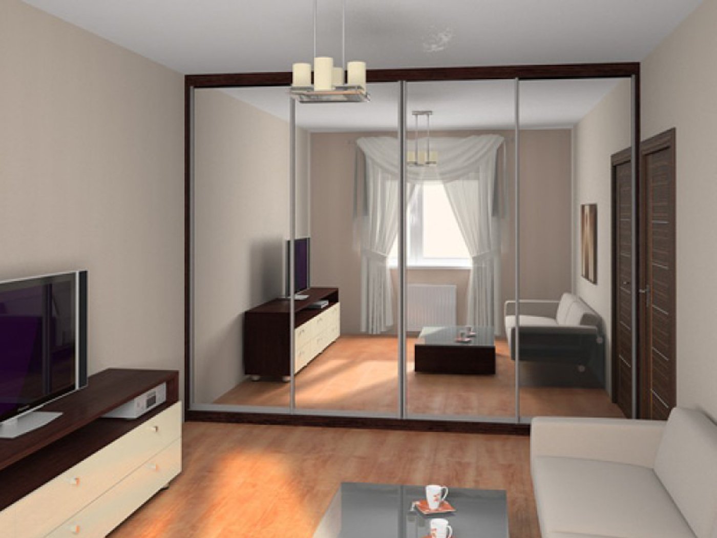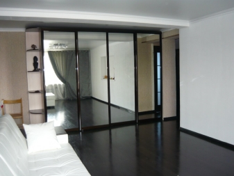 Wie Sie wissen, vergrößern Spiegelflächen den Platz deutlich, was sehr gut für kleine Wohnzimmer ist. Und wenn Sie befürchten, dass Sie so eine Tür versehentlich zerschlagen, dann wählen Sie Modelle, bei denen die Glasoberfläche mit spezieller Technologie bearbeitet wird, die den Spiegel widerstandsfähig und widerstandsfähig gegen mechanische Beschädigungen macht. Übrigens, moderne Technologie kann Sie vor Schmutz schützen, wenn Sie sich für eine geeignete Beschichtung entscheiden, die vor Flecken und Staub schützt.