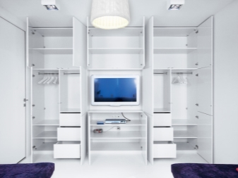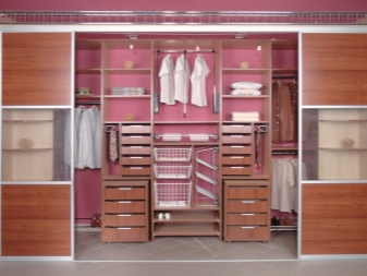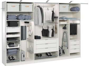 Achten Sie auch auf das Vorhandensein von verschiedenen Regalen und zusätzlichen Fächern. Es hängt von ihnen ab, wie bequem es für Sie sein wird, Ihre Sachen nach der Jahreszeit und dem Zweck zu teilen. Es gibt Standardoptionen mit mehreren Regalen und praktischen Schubladen. Aber wenn die Füllung eines solchen Schrankes Ihnen nicht passt, können Sie Möbel nach Maß herstellen. Zugegeben, in diesem Fall kostet der Kauf viel mehr.