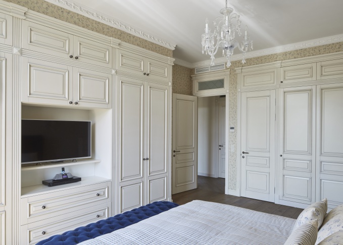 In Bezug auf die Höhe sollte der gesamte Wandschrank idealerweise bis zur Decke reichen. Manchmal gibt es auch Optionen mit Zwischengeschossen. Es ist auch sehr praktisch, weil Sie dort alle Dinge speichern können, die Sie gerade nicht brauchen.