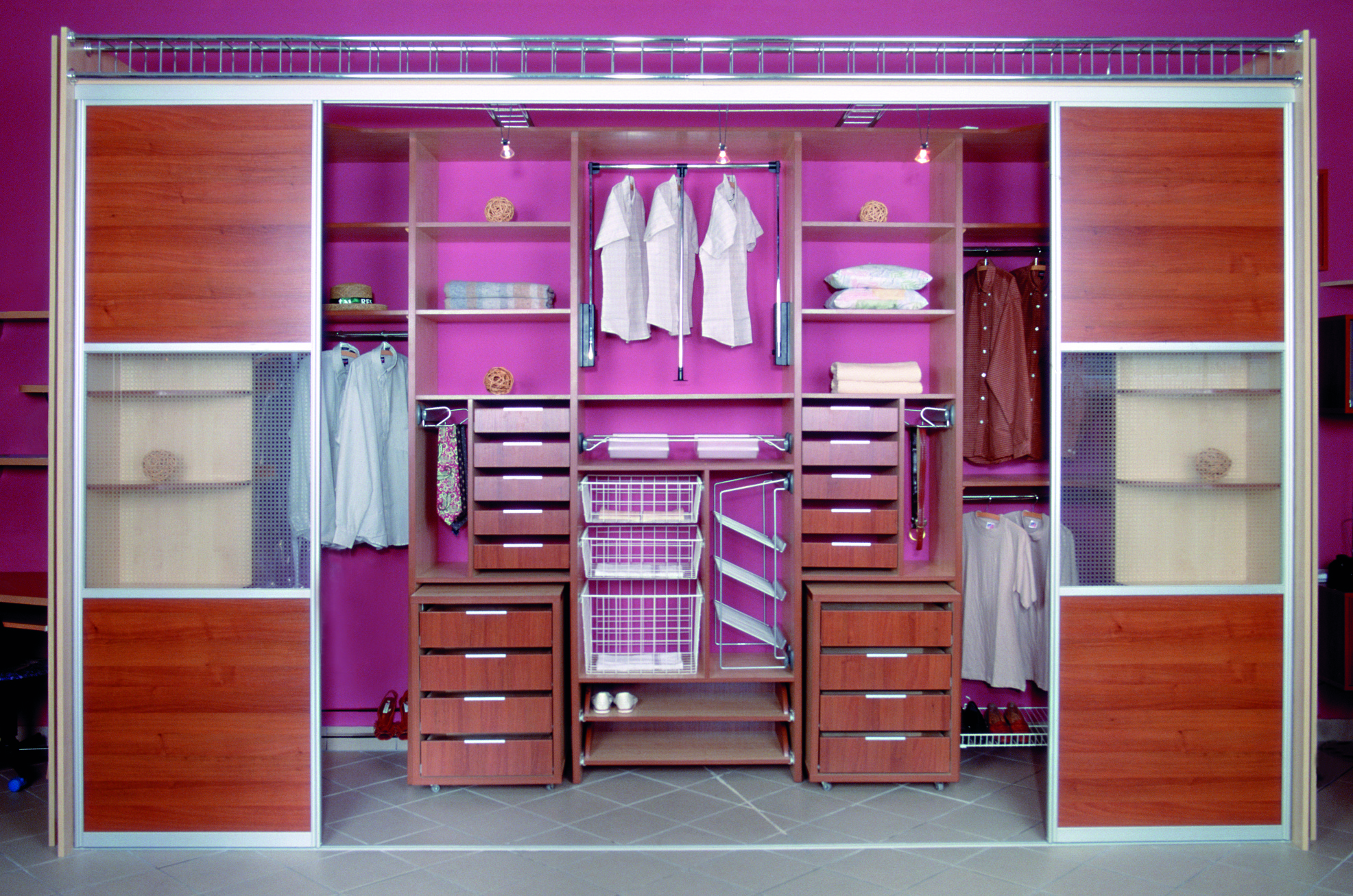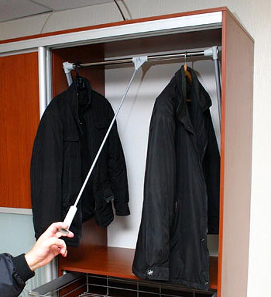 Einige Hersteller gingen noch weiter und brachten die Herstellung von Schränken auf ein neues Niveau, indem sie ihre Entwürfe mit Aufzügen ergänzten, die Kleiderbügel mit Kleidung bis zu einer Höhe von drei Metern mischen konnten. Also, wenn Sie ein Zimmer mit sehr hohen Decken haben, dann können Sie einen Schrank mit einem Aufzug mit der entsprechenden Höhe wählen und damit alle Ihre Probleme mit dem Raum lösen.