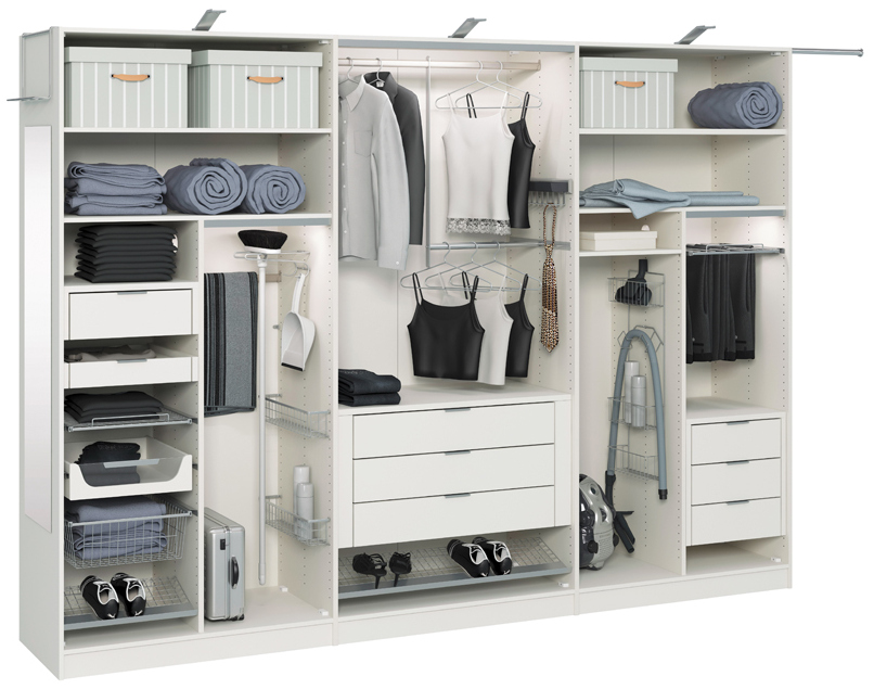 Oft erfreuen uns die Hersteller mit allen möglichen funktionalen Kleinigkeiten, die das Leben wirklich erleichtern. Zu diesen Details gehören praktische Schubladen für die Aufbewahrung aller Kleinigkeiten sowie Wäschekörbe, Kleiderbügel für Männer und Gürtel.