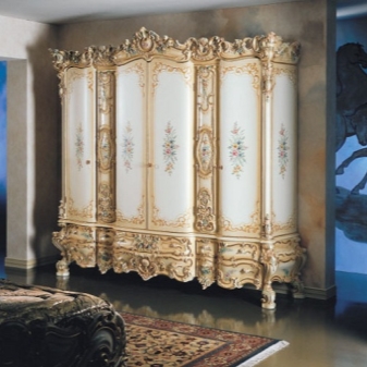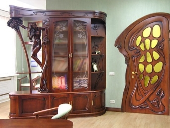 Designer der damaligen Zeit waren von der Natur inspiriert, daher ist die Dekoration der Schränke meistens Gemüse - Blätter, Blumen und Zweige. Die Garderobe selbst kann jedoch einem Blatt oder einer fremden Blume ähneln. Die Fassaden sind meistens glatt poliert, und das natürliche Design des Baumes ist nicht unter der Farbe verborgen.