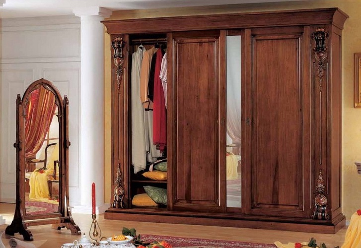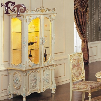 Der Schrank muss zusätzliche Teile aus anderen Materialien haben - Griffe aus Silber, Messing oder Elfenbein, Einsätze an den Fenstertüren aus Glas, Glasmalerei, Mosaik.
