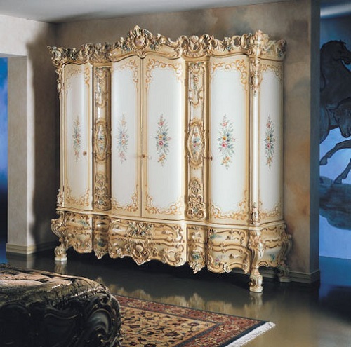 Stil, in Italien im Mittelalter geformt. Barock symbolisiert Pomp und Anmaßung, versucht, den Reichtum des Besitzers zu demonstrieren. In diesem Stil werden Möbel aus weichem Holz verwendet, die leicht verarbeitet werden können, da Schränke und Kommoden mit Schnitzereien übersät sind. Die Beine der Schränke und Tische sind seltsam gebogen.