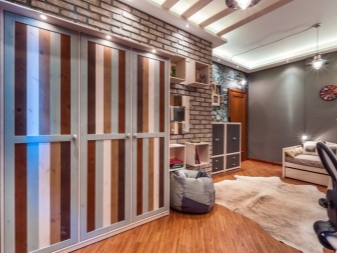 Loft-Stil Kleiderschränke passen viele. Aber vor allem wird dieser Stil von jungen Leuten geschätzt. Dieser Innenraum sieht ungewöhnlich aus und ermöglicht es Ihnen, Individualität zu betonen. Vervollständigen Sie den Kleiderschrank mit stilvollen Sofas, Sesseln und entsprechender Einrichtung und Sie werden ein außergewöhnliches Zimmer haben.