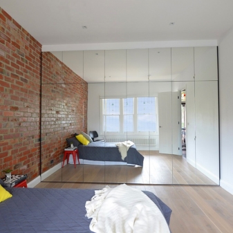 Um Platz in dem Raum zu sparen, wird ein eingebauter Kleiderschrank erlaubt.Wenn der Raum schon eine Nische hat, dann wird Ihnen diese Option perfekt passen. Es gibt auch die Möglichkeit von Einbauschränken. Sie sind billiger, weil in diesem Entwurf in der Regel kein Element vorhanden ist. Zum Beispiel eine Palette oder eine der Wände.