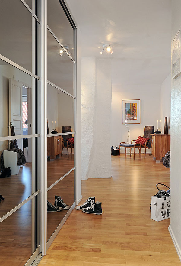 Sieht gut aus und eine Garderobe mit einer Spiegeltür. Dies ist eine bequeme Option, weil Sie sich in vollem Wachstum sehen können. Angenehm zufrieden mit dem Aussehen eines solchen Produkts, denn es passt perfekt in das moderne Interieur.