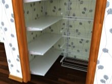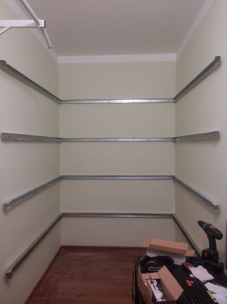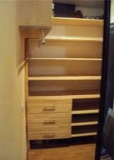 Regale im Schrank helfen, Platz im Wohnraum zu sparen, unnötige Dinge zu verstecken und dank praktischer Platzierung schnell die benötigten Gegenstände zu finden.Darüber hinaus, Self-made-Einrichtungen, geben Sie nicht das Familienbudget auf die Dienste von professionellen Bauherren.